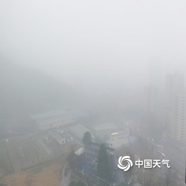 中国天气网讯 1月13日,湖南省湘西自治州吉首市出现大雾天气,远山楼宇、街道...