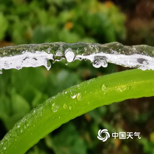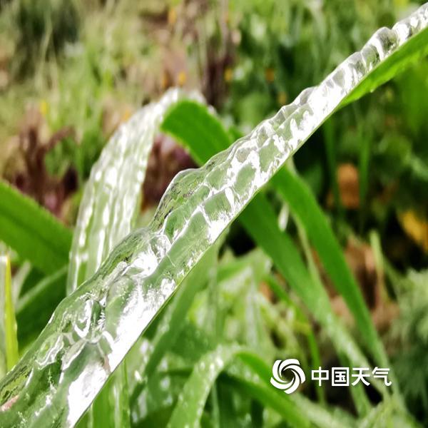 1月3日,贵州省贵阳市多地最低气温跌至冰点以下,受冻雨影响,草木挂“冰装”,晶莹剔透。