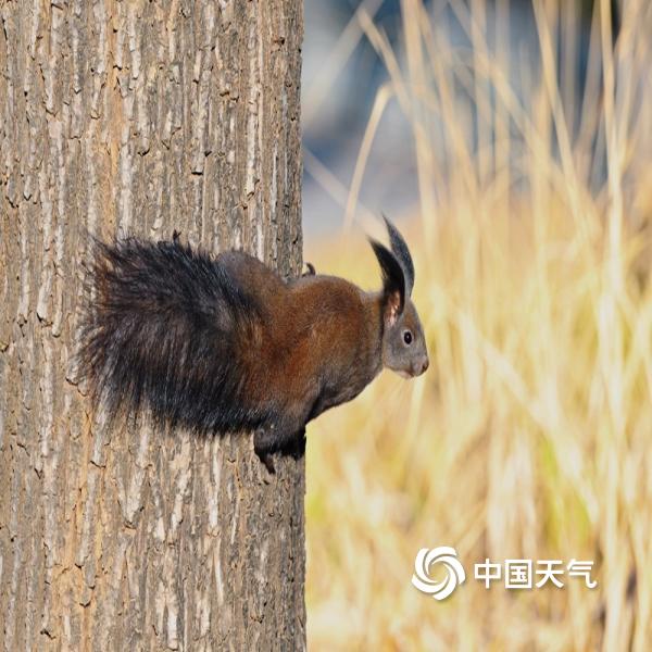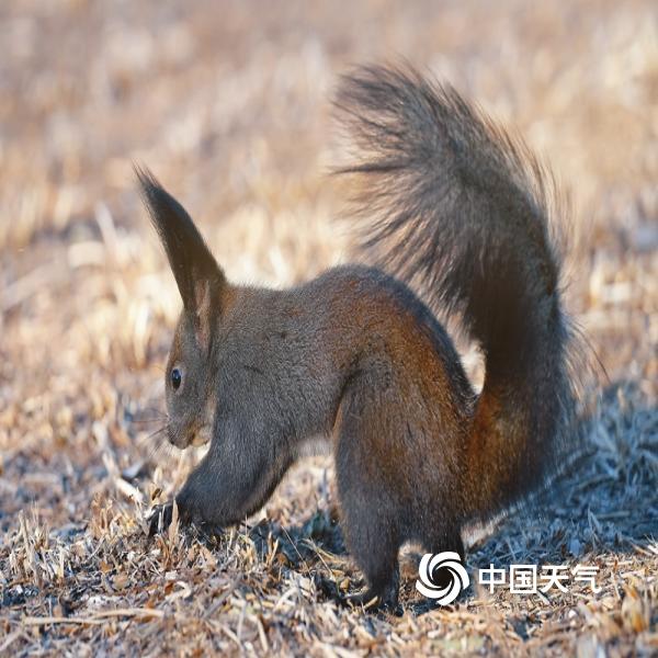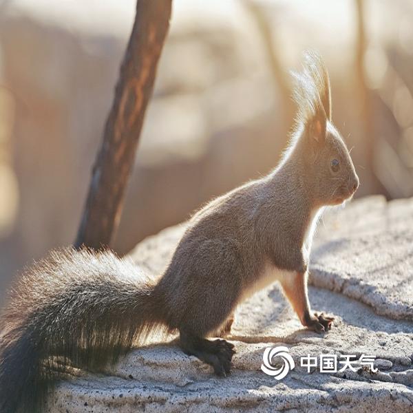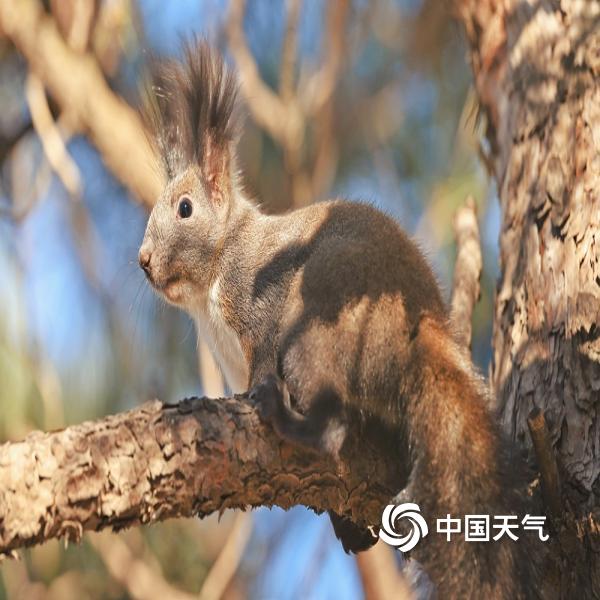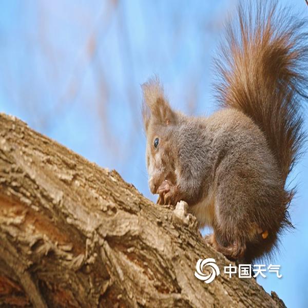 蓝天暖阳下,一只小松鼠悠闲自在,高清视角下,小表情灵动满分,可爱翻倍。